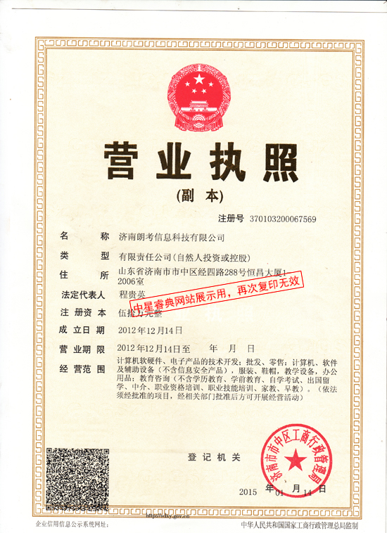 | Copyright(C)济南朗考信息科技有限公司 All Rights Reserved 鲁ICP备06014887号 | |