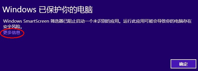 安装时显示Windows已保护你的电脑和一个确定按钮,你点图中的“更多信息”(红圈中)可以继续安装。